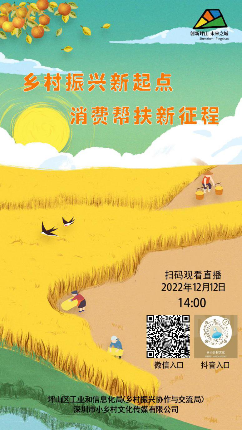 在“双十二”即将到来之际,坪山区“乡村振兴新起点,消费帮扶新征程”直播活动,也将在12月12日闪亮登场!