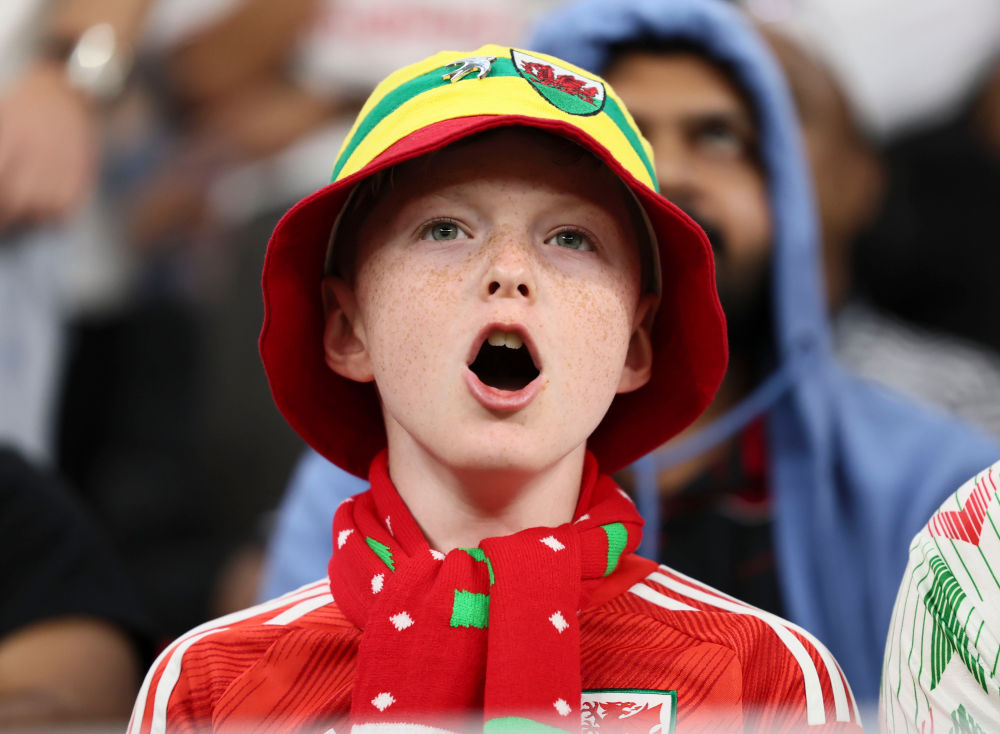 ↑11月29日,威尔士队小球迷在小组赛对阵英格兰队的比赛前。新华社记者 兰红光 摄
