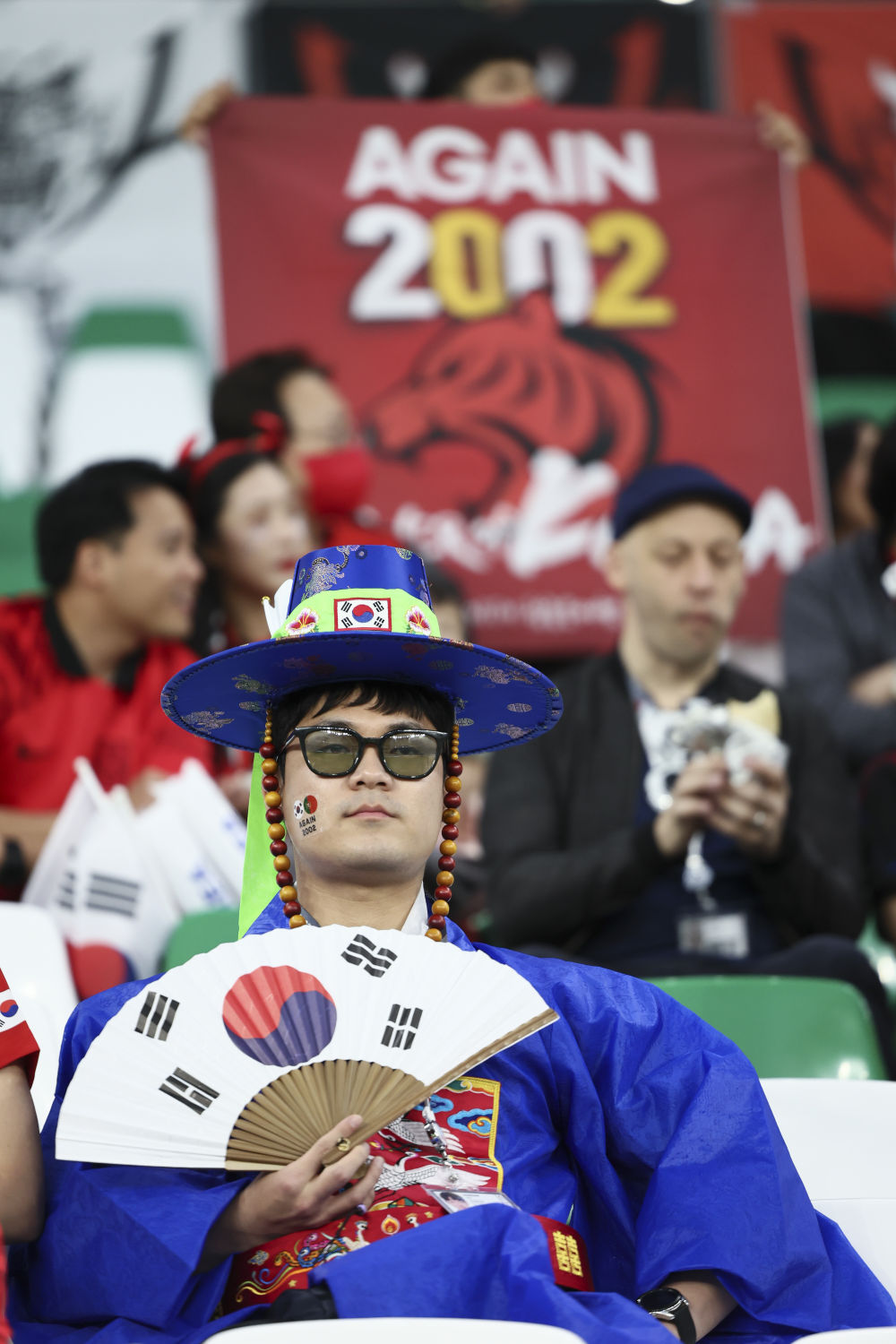 ↑12月2日,韩国队球迷在小组赛对阵葡萄牙队的比赛前。新华社记者 兰红光 摄
