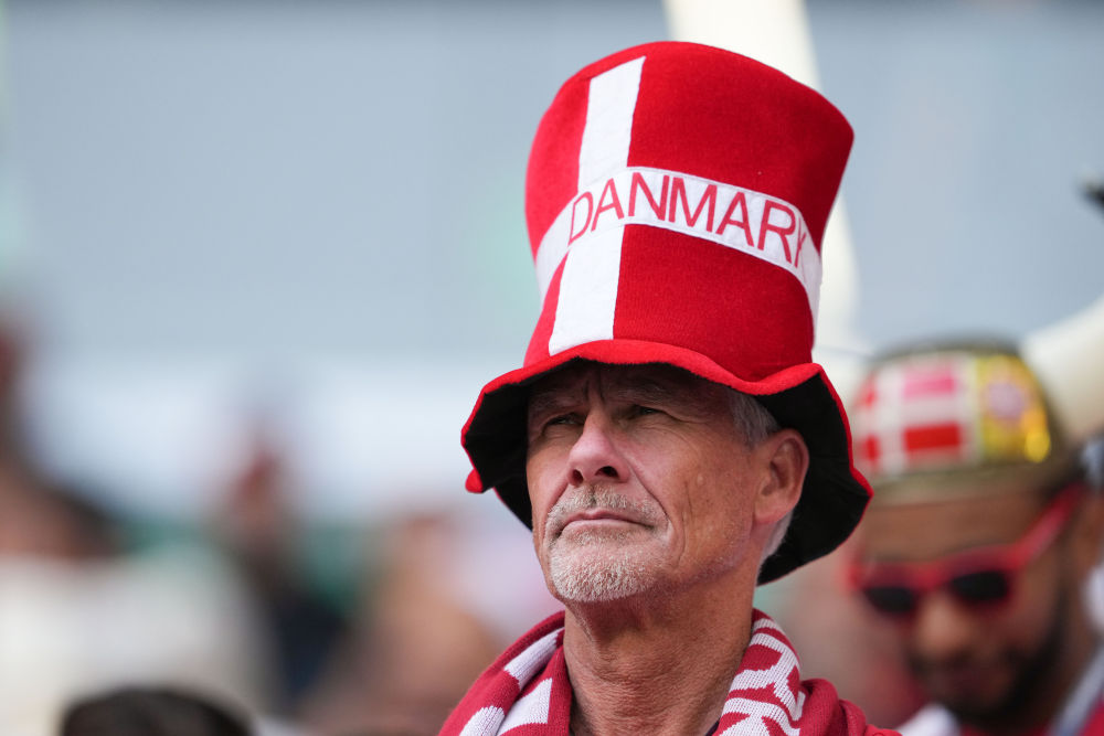 ↑11月22日,丹麦队球迷在小组赛对阵突尼斯队的比赛前。新华社记者 郑焕松 摄