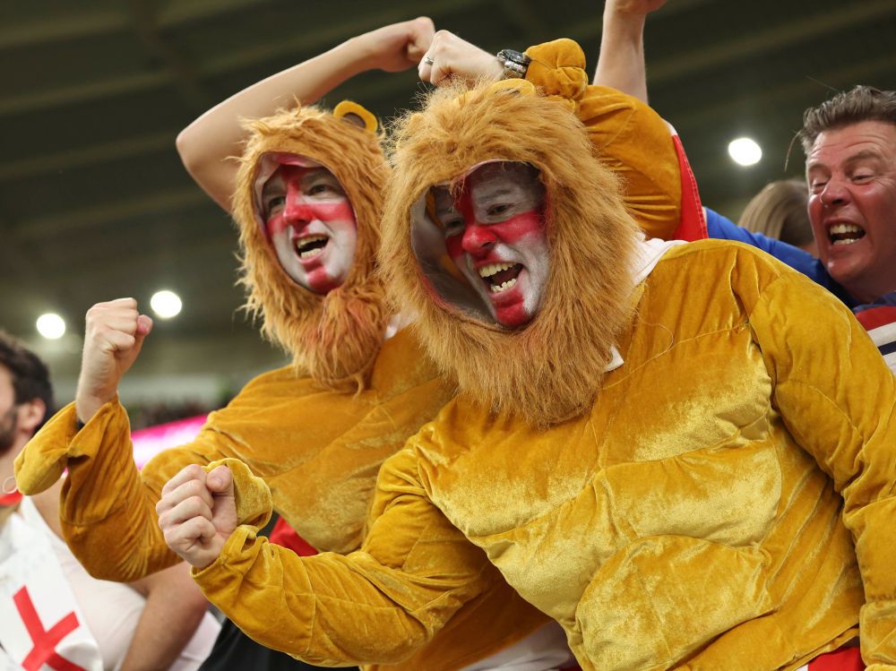 ↑11月29日,英格兰队球迷在小组赛对阵威尔士队的比赛前。新华社记者 韩岩 摄