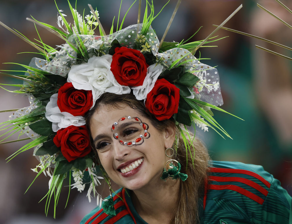 ↑11月22日,墨西哥队球迷在小组赛对阵波兰队的比赛前。新华社记者 王丽莉 摄