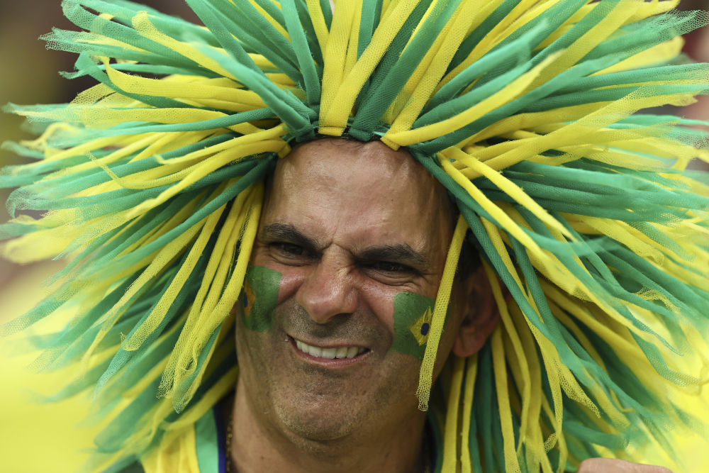 ↑11月24日,巴西队球迷在小组赛对阵塞尔维亚队的比赛前。新华社记者 兰红光 摄