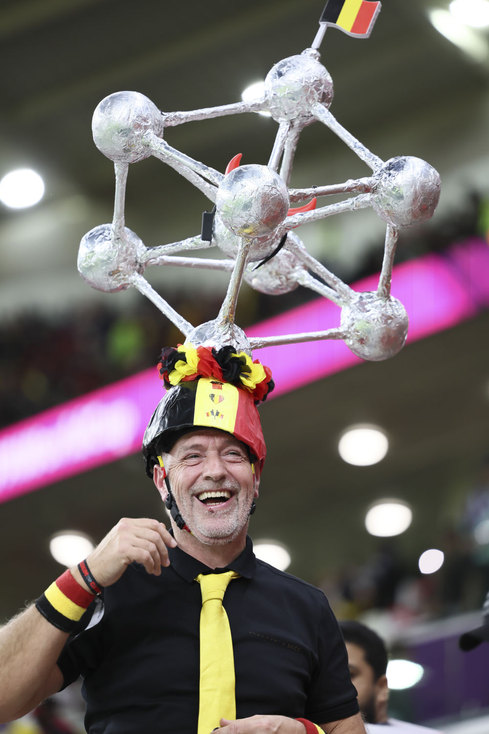 ↑11月23日,比利时队球迷在小组赛对阵加拿大队的比赛前。新华社记者 兰红光 摄