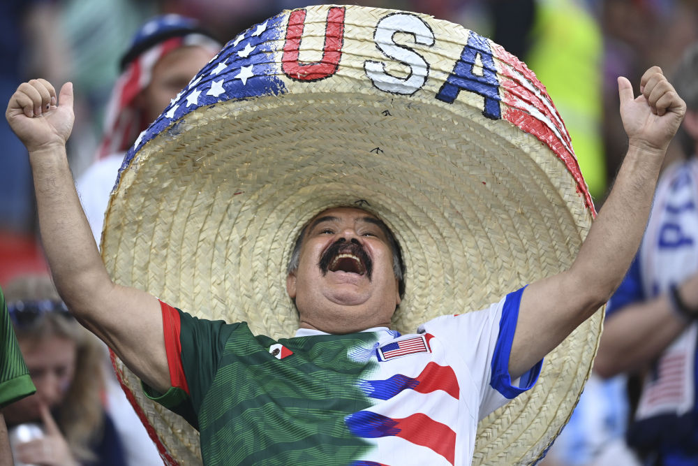↑11月25日,美国队球迷在小组赛对阵英格兰队的比赛前。新华社记者 李俊东 摄