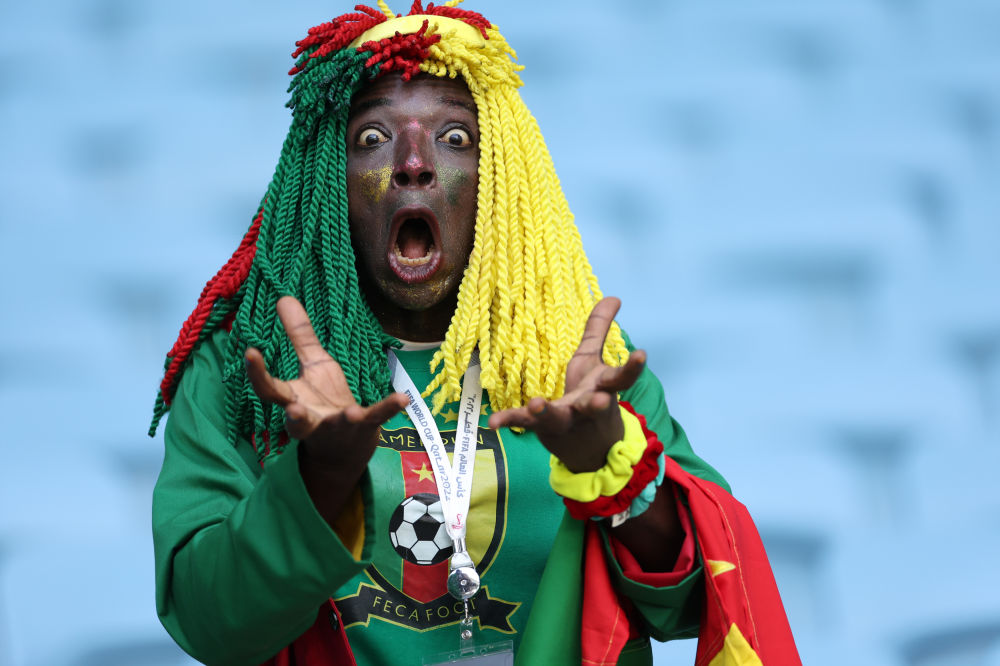 ↑11月24日,喀麦隆队球迷在小组赛对阵瑞士队的比赛前。新华社记者 贾浩成 摄