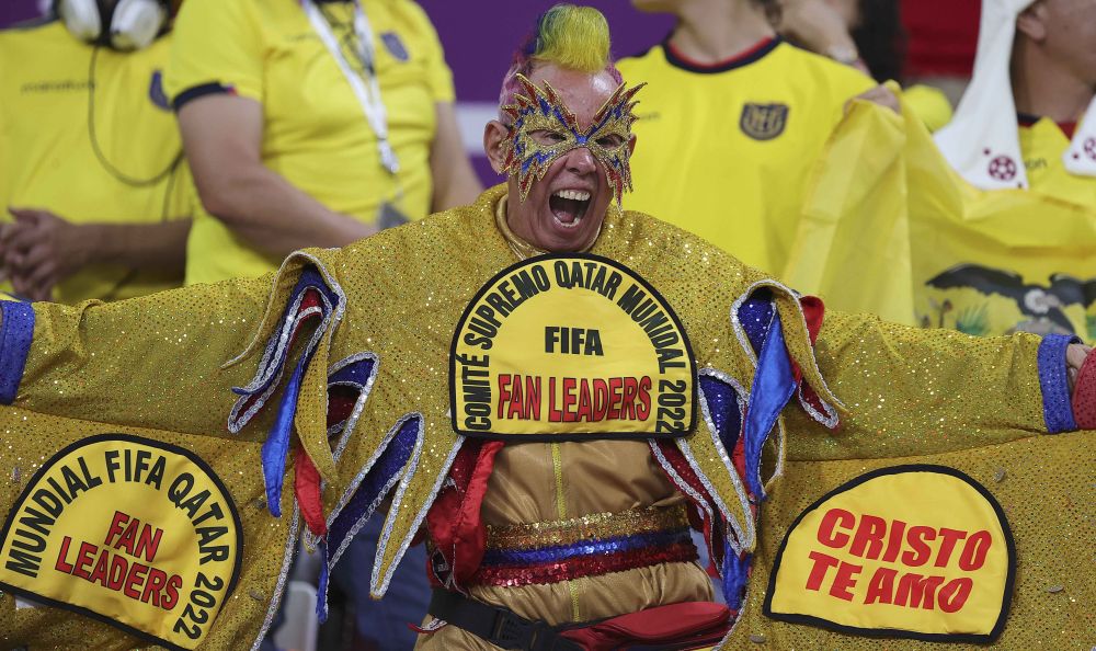 ↑11月29日,厄瓜多尔队球迷在小组赛对阵塞内加尔队的比赛前。新华社记者 王东震 摄