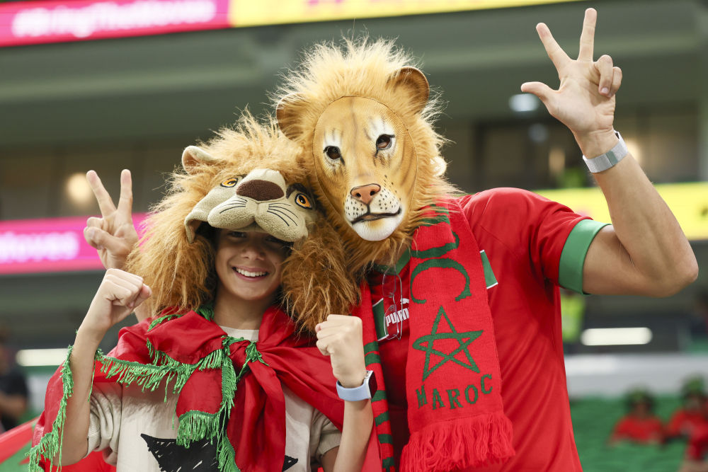 ↑12月10日,摩洛哥队球迷在四分之一决赛对阵葡萄牙队的比赛前。新华社记者 兰红光 摄