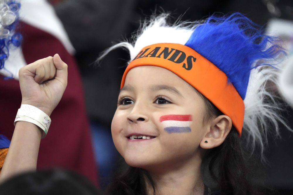 ↑11月29日,荷兰队小球迷在小组赛对阵卡塔尔队的比赛前。新华社记者 李钢 摄