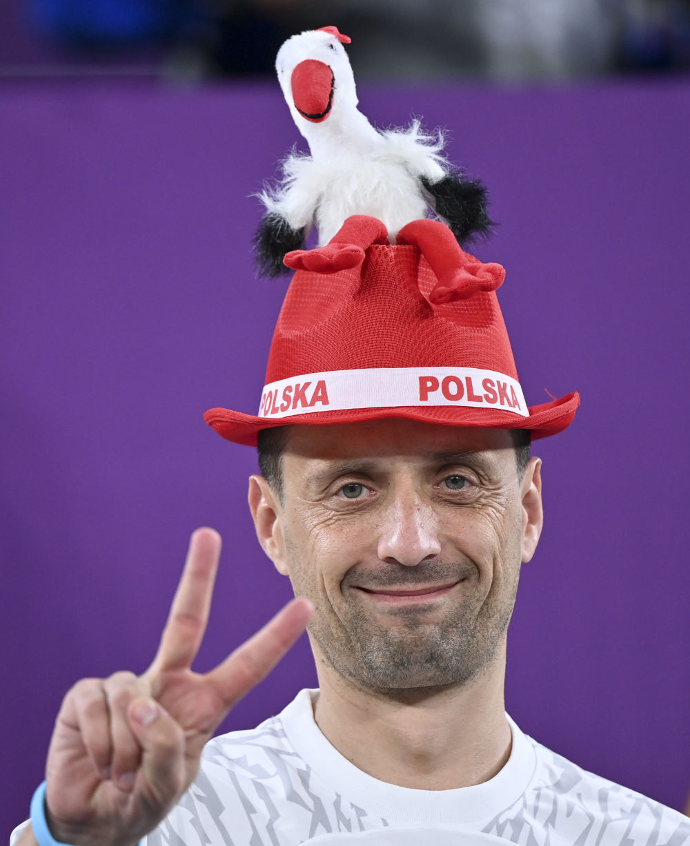↑11月22日,波兰队球迷在小组赛对阵墨西哥队的比赛前。新华社记者 陈诚 摄