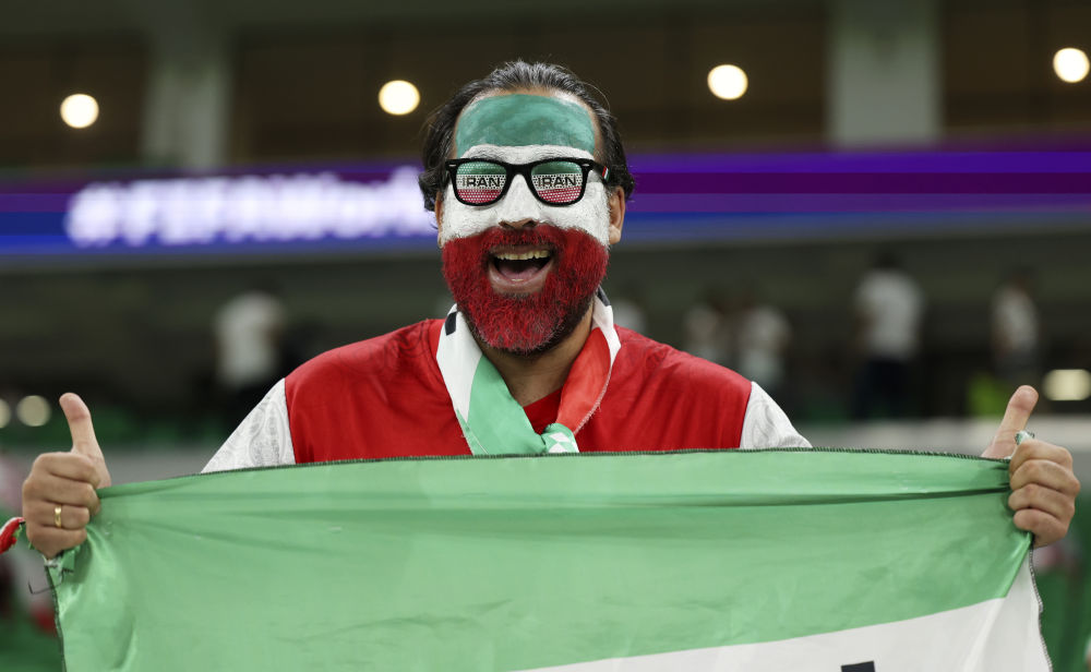 ↑11月29日,伊朗队球迷在小组赛对阵美国队的比赛前。新华社记者 曹灿 摄