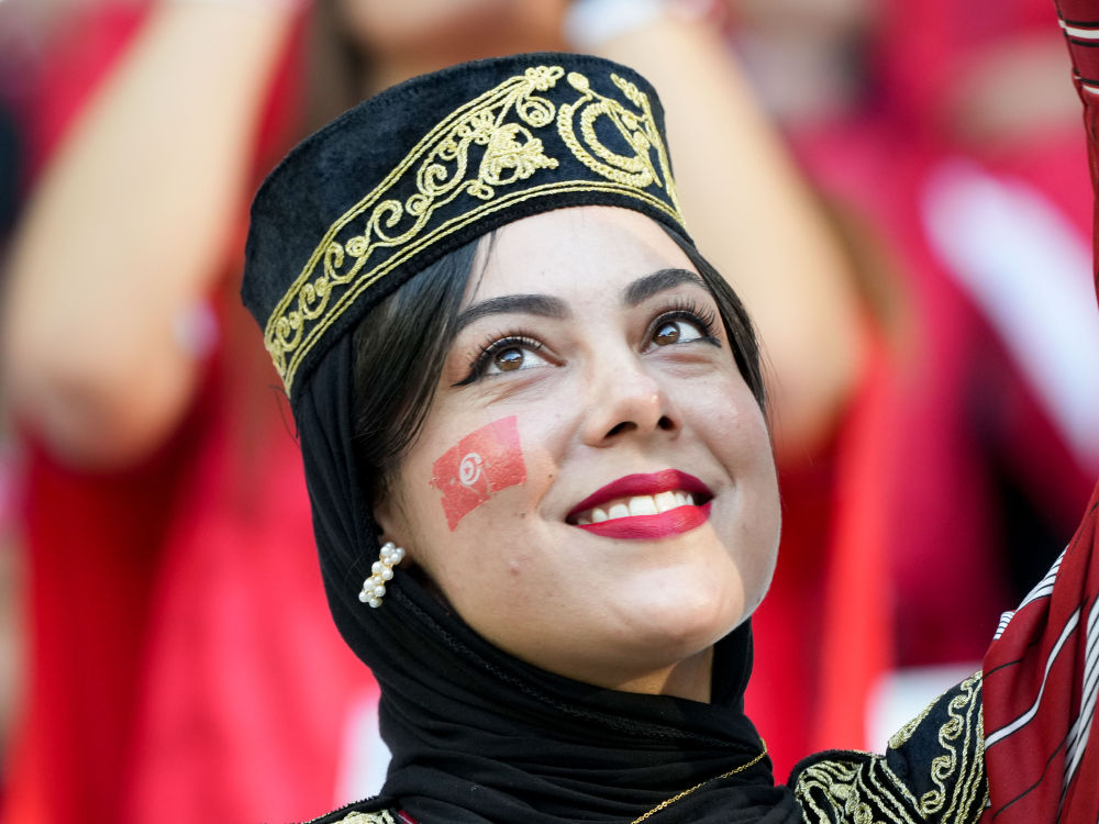 ↑11月22日,突尼斯队球迷在小组赛对阵丹麦队的比赛前。新华社记者 丁旭 摄