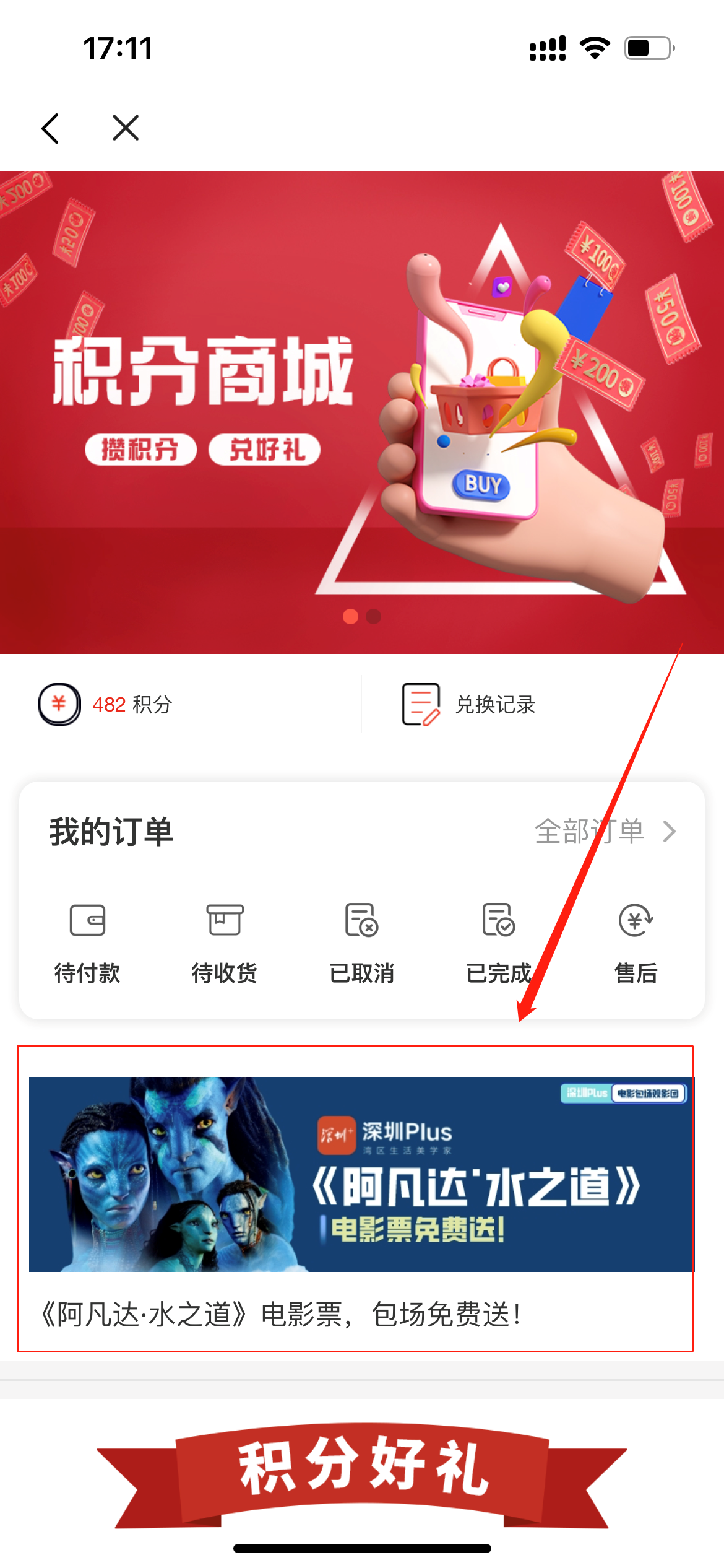 3、找到《阿凡达:水之道》电影票刮刮卡入口