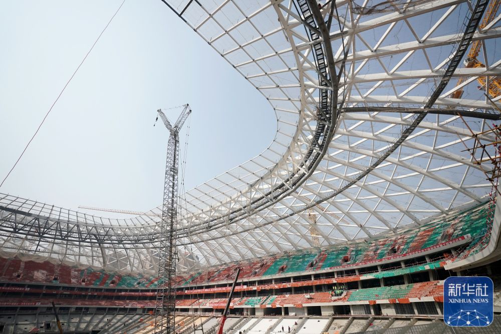 这是4月8日拍摄的北京工人体育场改造复建项目现场。新华社记者 张晨霖 摄