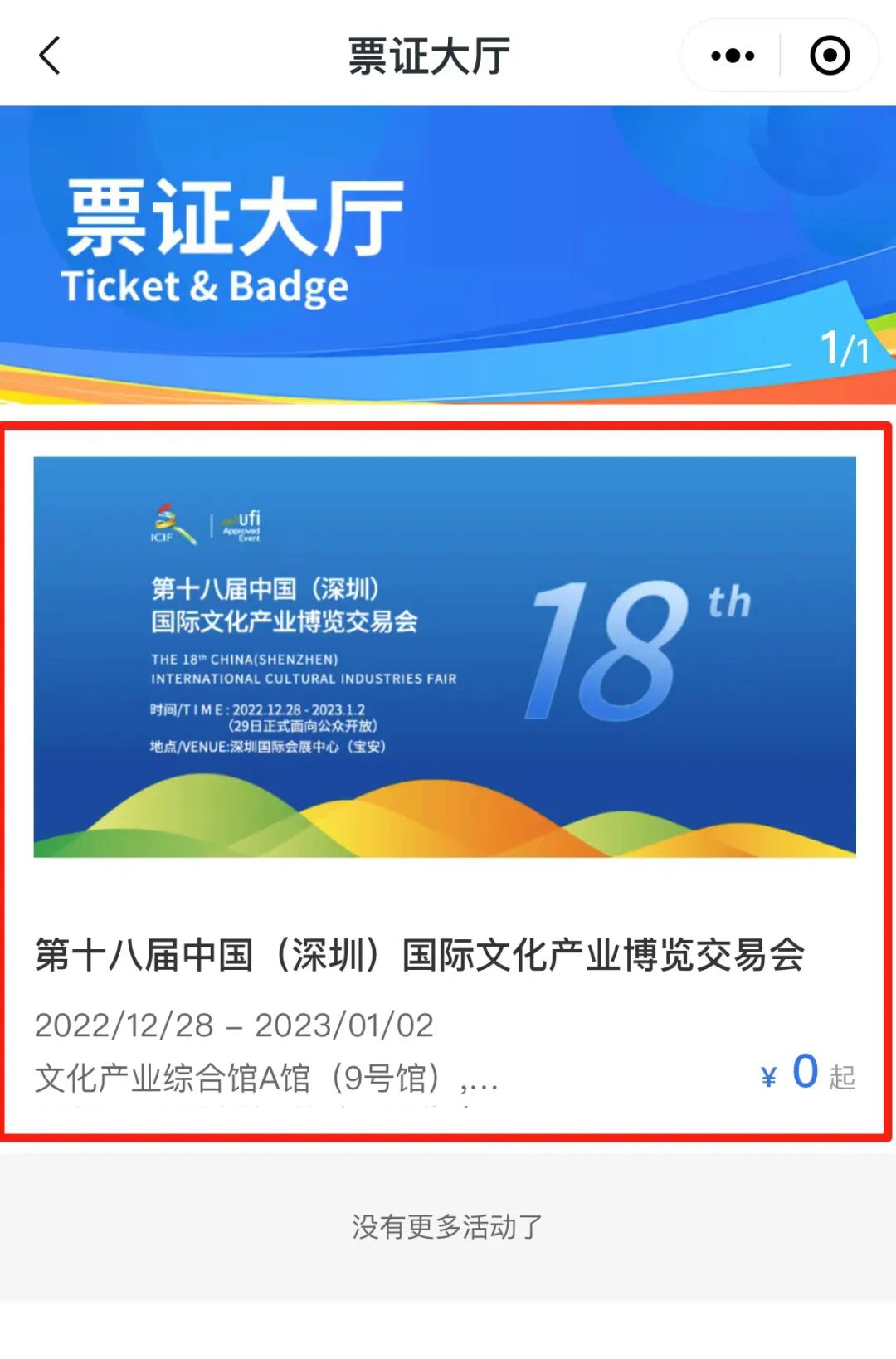 进入票证大厅页面,点击【第十八届中国(深圳)国际文化产业博览交易会】;