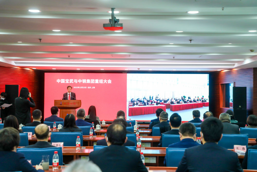 12月23日,中国宝武与中钢集团重组大会以视频连线方式在北京和上海举行。(中钢集团供图)
