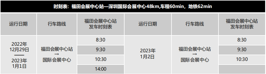 为了方便观众由深圳市中心区前往深圳国际会展中心,主办方展期内将设立两个穿梭巴士接驳点,供广大市民观众免费乘坐。