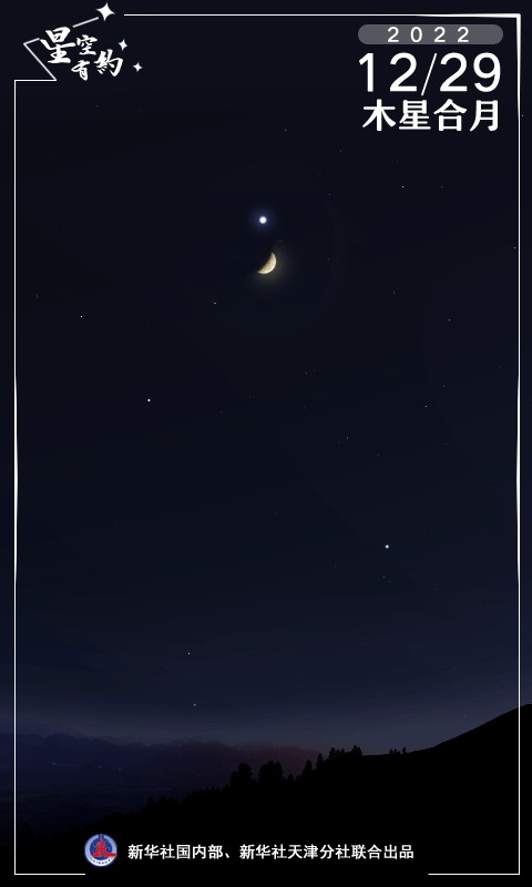 天文科普专家介绍,12月29日晚天宇将上演木星合月,这是2022年最后一场行星合月。届时只要天气晴好,我国公众可在南方天空欣赏到明亮木星与一轮上弦月近距离竞辉的唯美画面。