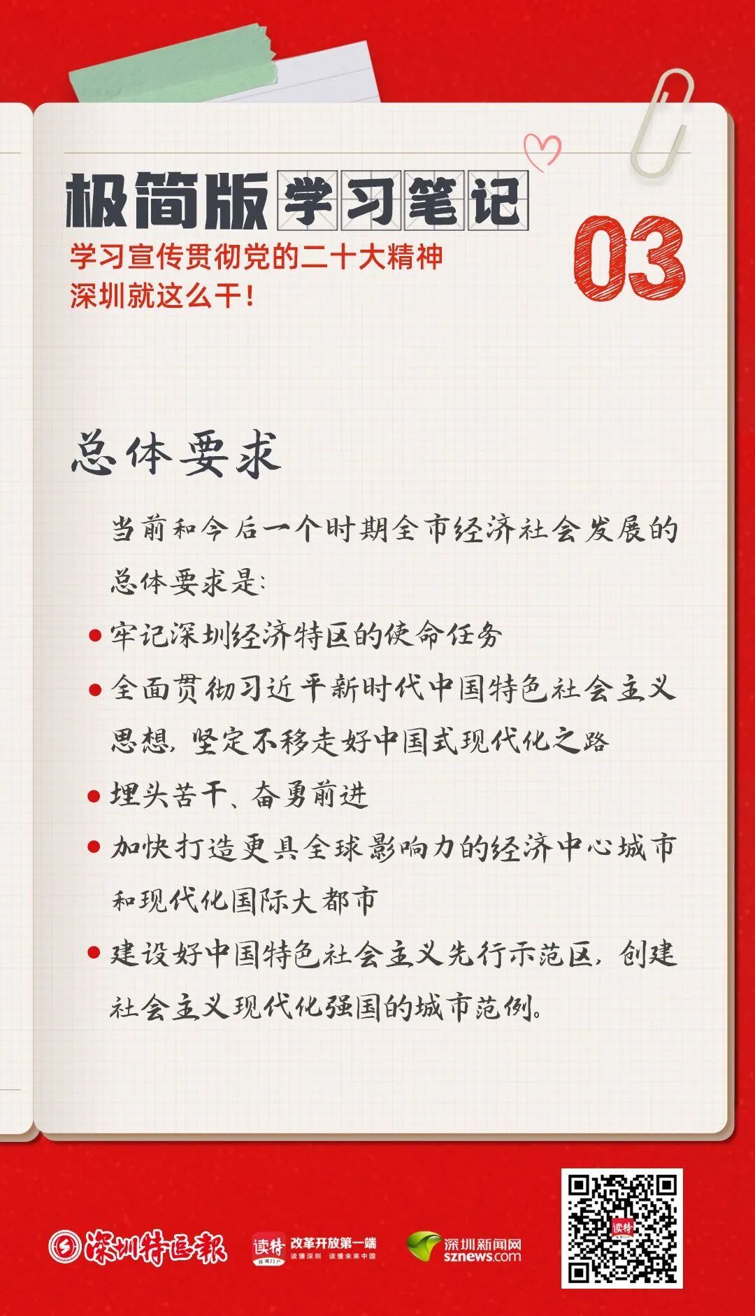 深圳在推进中国式现代化道路上的目标定位是什么?如何在推进中国式现代化道路上走在前列、勇当尖兵?报告中提出一个总体要求,概括起来就是五句话——