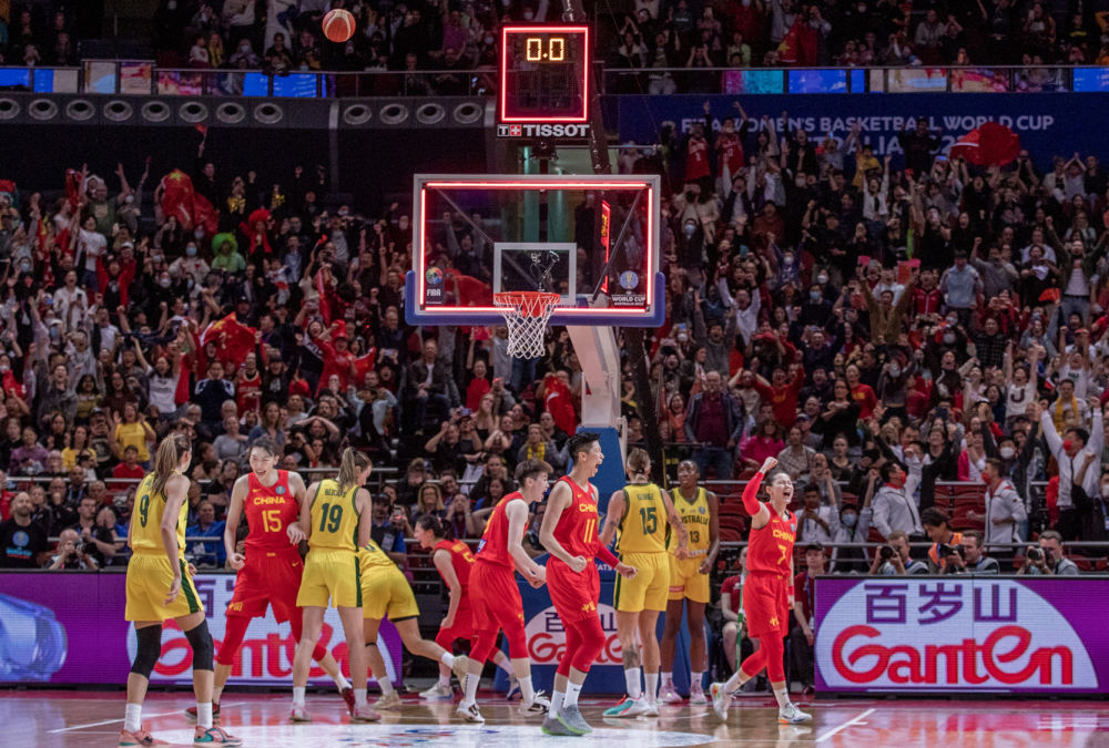 9月30日,中国队球员在女篮世界杯半决赛比赛后庆祝。新华社发(胡泾辰摄)