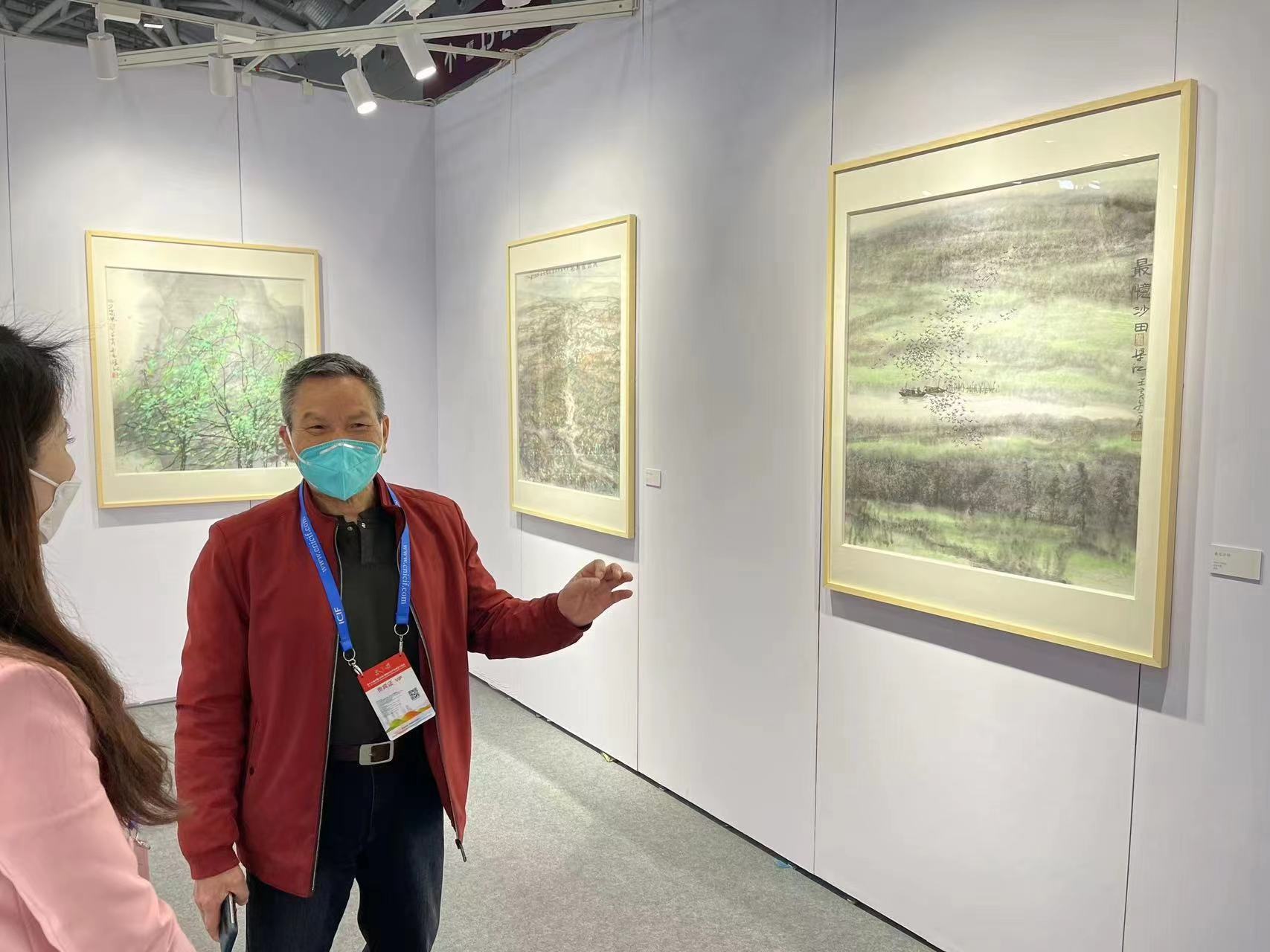 绘画方面,他早年出自广州美院油画科班,后作中国画,山水花鸟不拘一格。他的作品技法多变,或追求笔法灵动洒脱,或着意画幅沉稳厚重,既有别于人也不重复自己。多年的笔墨历练,坚实的技法功底,更加上几十年从南到北的宽广视野,丰厚学养融于书画笔墨之间,作品的立意、技法、韵味均不同凡响。近年作品多次在中国美术馆、炎黄艺术馆、中国国家博物馆及国外展览,被中国美术馆、梅兰芳纪念馆、清华大学、山东大学等收藏。