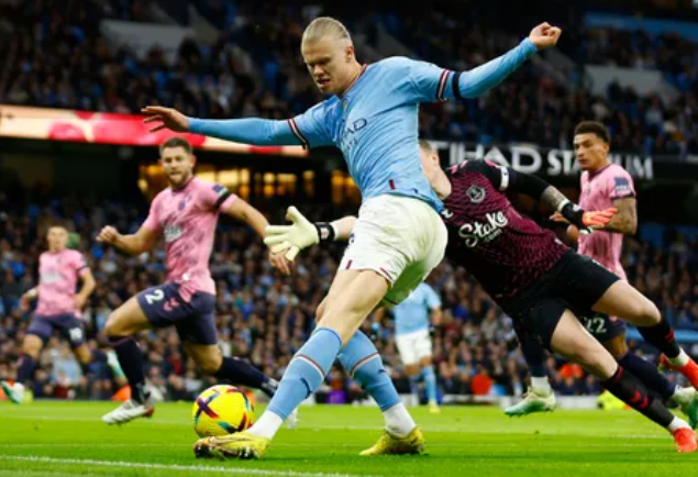 2022年12月31日,曼城队球员哈兰德在比赛中破门得分。图片来自英超联赛官网