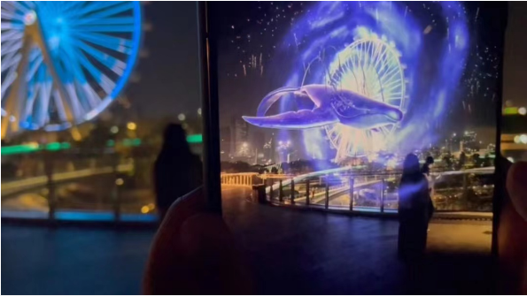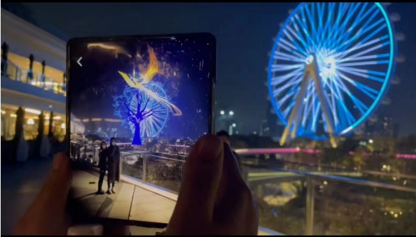 31日晚19:30,在人群的欢悦呼声中,市民朋友们共同见证了这场浪漫梦幻的元宇宙AR秀徐徐启幕。