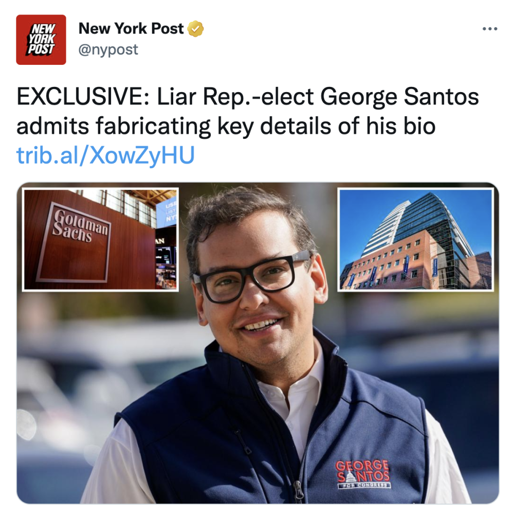 美国新一届国会开幕在即,新当选众议员乔治·桑托斯近日被媒体曝光其履历上不少“光鲜”内容纯属造假。在媒体追问之下,桑托斯一边承认撒谎,一边又诡辩称“这不妨碍我当好国会议员”。如此“神逻辑”引发舆论哗然。丑闻连日来持续发酵,有美国网友神点评“他这样的很适合华盛顿”。
