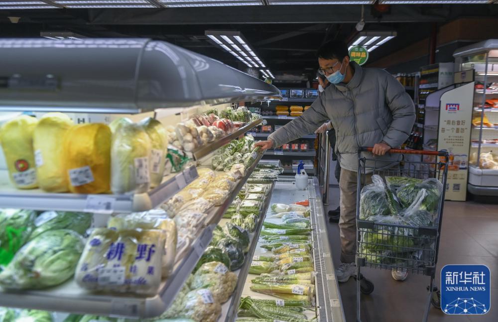 2022年12月27日,在嘉兴市一生鲜超市内,顾客在选购蔬菜。新华社记者 徐昱 摄