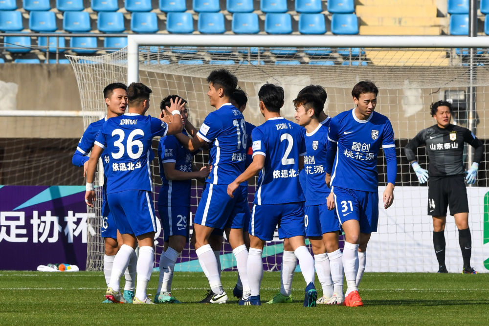 2022中国足协杯四分之一决赛首回合4日在江苏苏州先战两场,山东泰山队3:1击败“全华班”出战的中超新科冠军武汉三镇队,上海申花队5:1大胜沧州雄狮队。