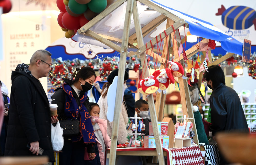 2022年12月31日,顾客在天津恒隆广场选购商品。2023年元旦假期第一天,天津线下餐饮、旅游、购物等消费业态回暖迹象显著。新华社记者 赵子硕 摄