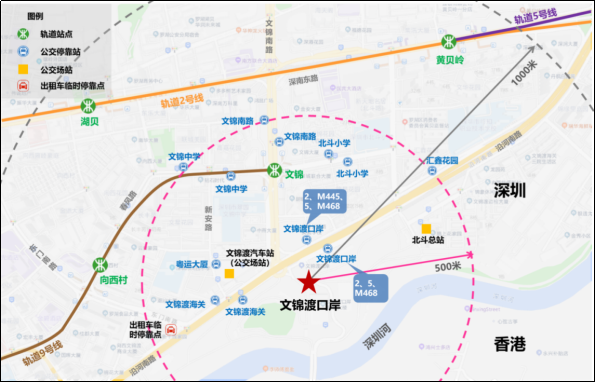 其中,文锦地铁站距文锦渡口岸不足300米,抵深旅客可乘坐9号线出行。