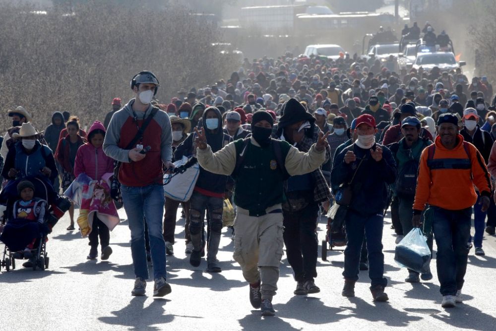 2021年12月9日,在墨西哥普埃布拉,试图北上前往美国的移民走在一条公路上。新华社发(卡洛斯·帕切科摄)