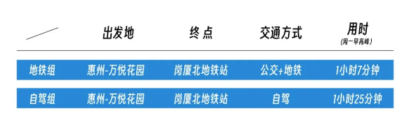 而我们之所以挑在周一早高峰进行实测,就是为了证明即便在其它交通条件下,居住在惠州的深圳人,依然能通过地铁准时到达公司打卡。如果放在其他工作日早高峰,自驾也许会提早个5-10分钟到达,但也并不见得有多大的时间优势。