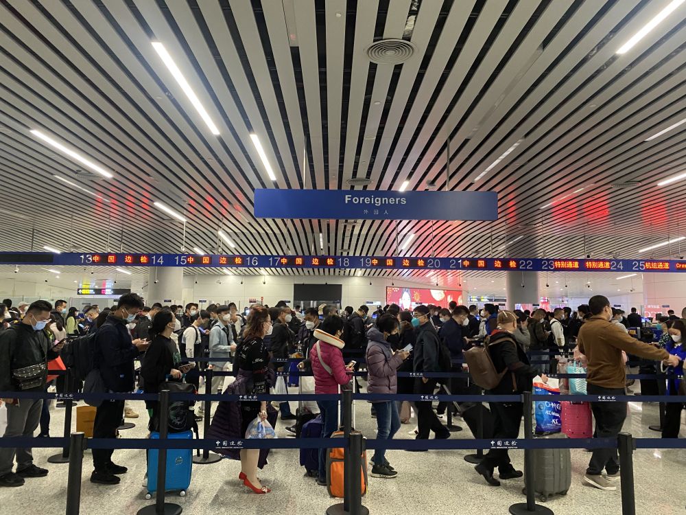 1月8日上午,白云机场口岸入境现场。(受访者供图)