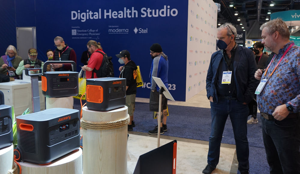 1月6日,人们在美国拉斯维加斯消费电子展上参观光充户外电源品牌Jackery电小二展区。(新华社发,曾慧摄)