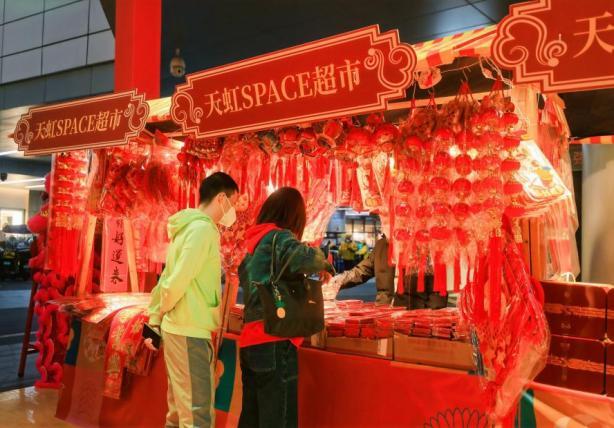 世纪汇购物中心节日气氛满满,潮流品牌、美妆护肤、年货零食,用年货爆品吸引顾客。在天虹SPACE超市,休闲零食、春节饰品、新春年花打造浓浓兔年氛围。中航城君尚购物中心的湊湊、鲍师傅、面包新语、乐高……一大波臻选优质好物来袭,节日氛围感十足。