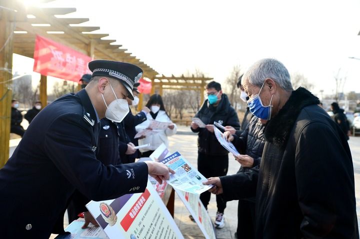 1月10日,在河北省邢台市新河县禁毒文化主题长廊,民警向群众讲解禁毒知识。新华社记者 王晓 摄