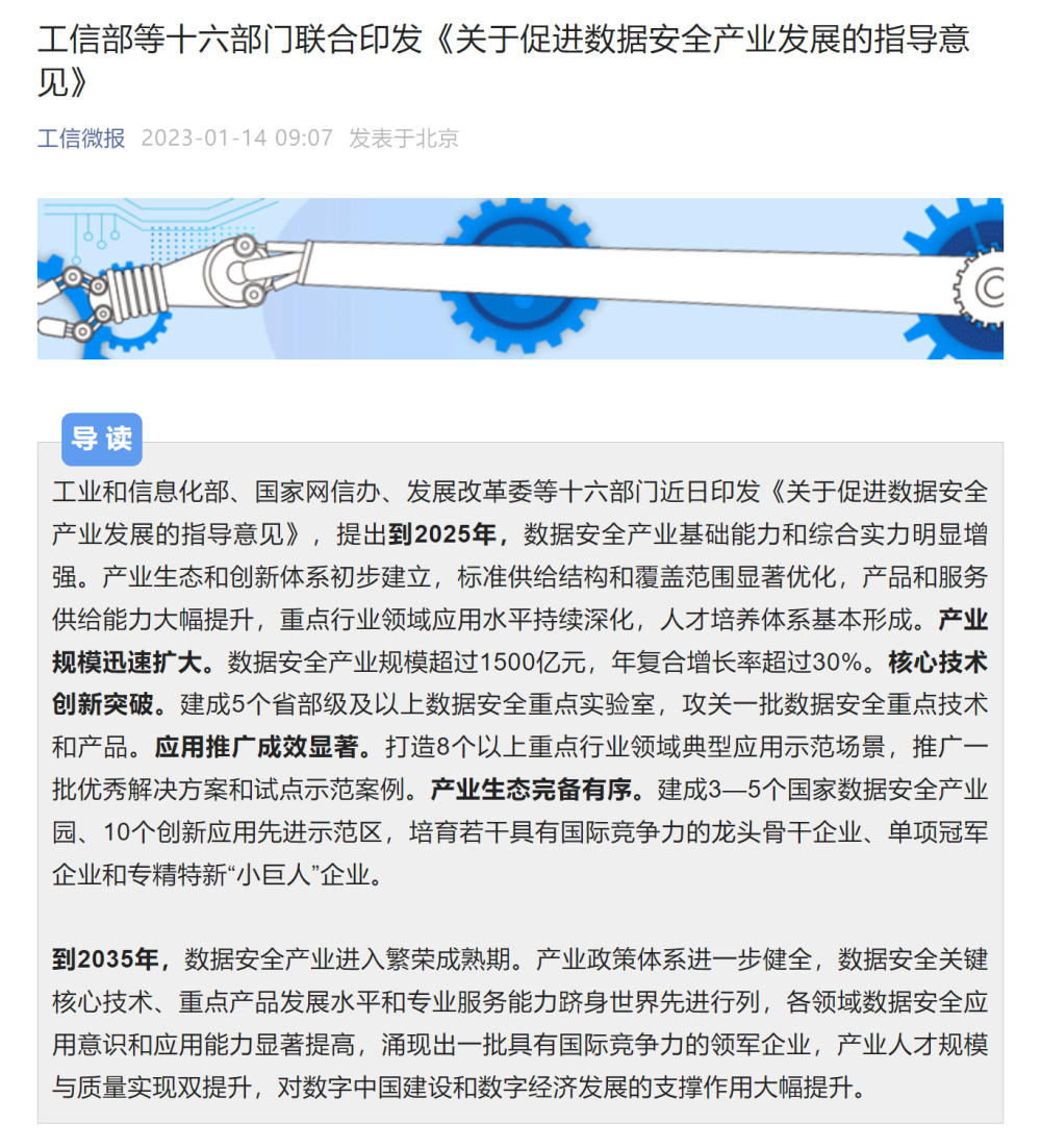 (原标题《工信部等十六部门联合印发<关于促进数据安全产业发展的指导意见>》)