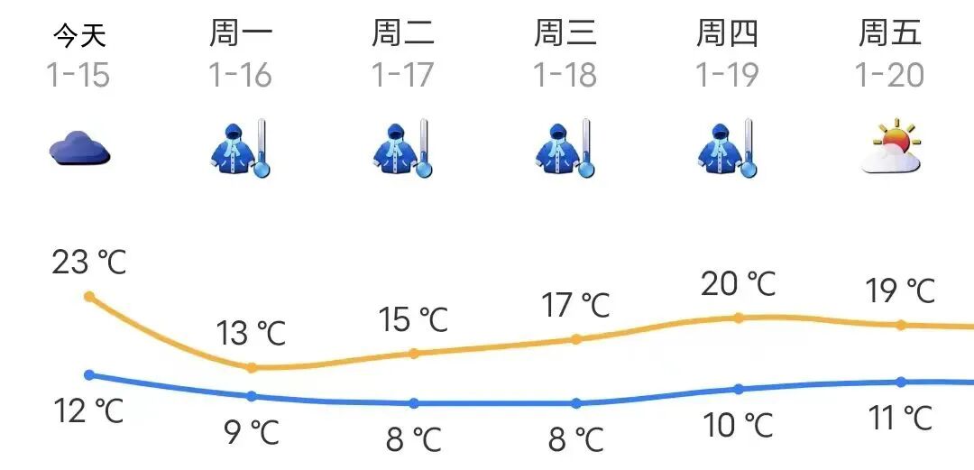 未来几天,最低气温从13-14日的20℃降至17-18日的8℃。到时候不仅冷,而且风大,简直冷上加冷。大家可以先备好保暖衣物,等到降温的时候就不会手忙脚乱。