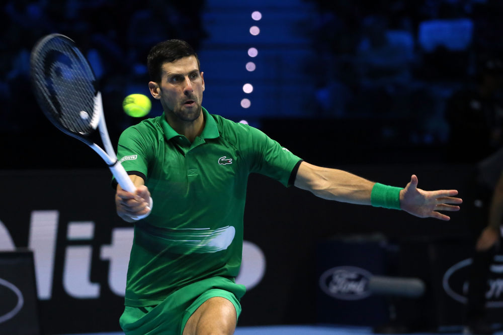 2022年11月20日,焦科维奇在意大利都灵进行的ATP年终总决赛的最终决赛中回球。新华社发