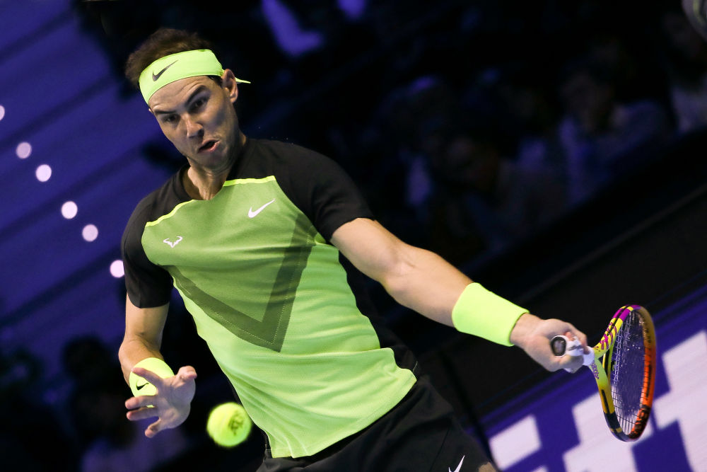 11月15日,纳达尔在意大利都灵进行的ATP年终总决赛小组赛中回球。新华社发