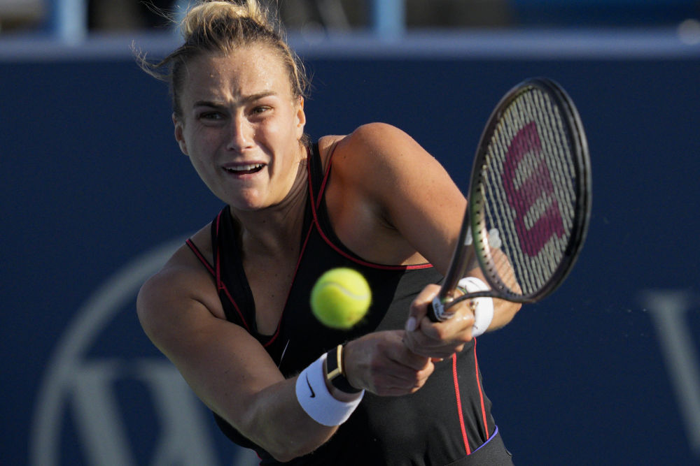 2022年8月19日,萨巴伦卡在辛辛那提网球公开赛女子单打比赛中回球。新华社/美联