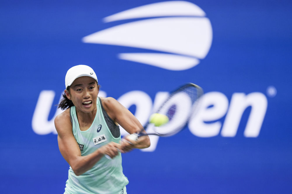 2022年9月4日,张帅在美网女单比赛中回球。新华社记者 刘杰 摄