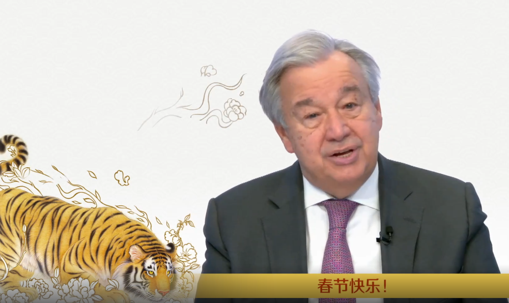 联合国秘书长古特雷斯的农历虎年新春致辞(视频截屏)