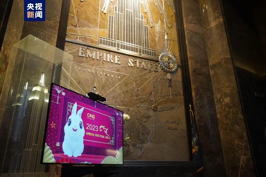 就在同一天,总台春晚宣传片首度在纽约地标帝国大厦亮相。帝国大厦在第五大道主要入口处专门架设了大屏电视,对春晚宣传片进行循环播放,不少媒体记者在现场竞相拍摄总台春晚宣传片。帝国大厦还在其86层观景台摆放了喜庆的“中国角”供游客拍照留念。当晚,帝国大厦还将点亮中国红,迎接兔年的到来。