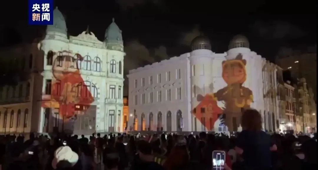 当地时间1月19日晚,总台两支春晚宣传片先后亮相巴西东北部最大城市累西腓的地标——零点广场,数千名当地市民及游客聚集在零点广场观看灯光秀及汇演。总台春晚首支动画宣传片《过大年看春晚》以灯光秀的形式,在零点广场旁一座有183年历史的建筑物上完整呈现并循环播放,活泼可爱的“兔圆圆”形象引发现场观众特别是少年儿童的阵阵欢呼。