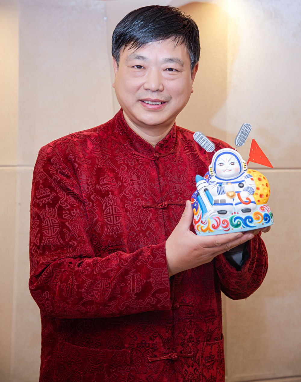 张忠强展示中国航天主题兔儿爷。受访者供图
