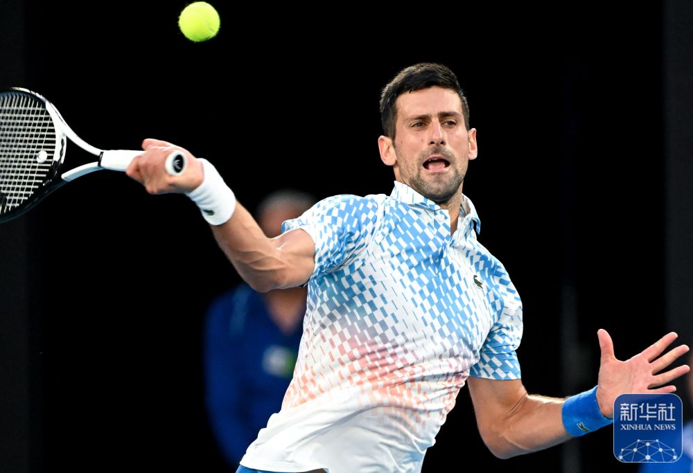 1月23日,在墨尔本进行的澳大利亚网球公开赛男子单打第四轮比赛中,塞尔维亚选手焦科维奇以3比0战胜澳大利亚选手德米尼亚乌尔,晋级八强。新华社记者 郭磊 摄
