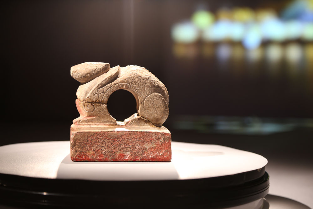 温顺的兔子如何与威猛霸气的龙联系在一起?我国迄今发现的唯一地上皇陵、前蜀开国皇帝王建墓就出土了这样一只威风凛凛的“兔子”。这是一件兔首龙身的谥宝,为王建随葬品,寓意“玉兔变真龙”。